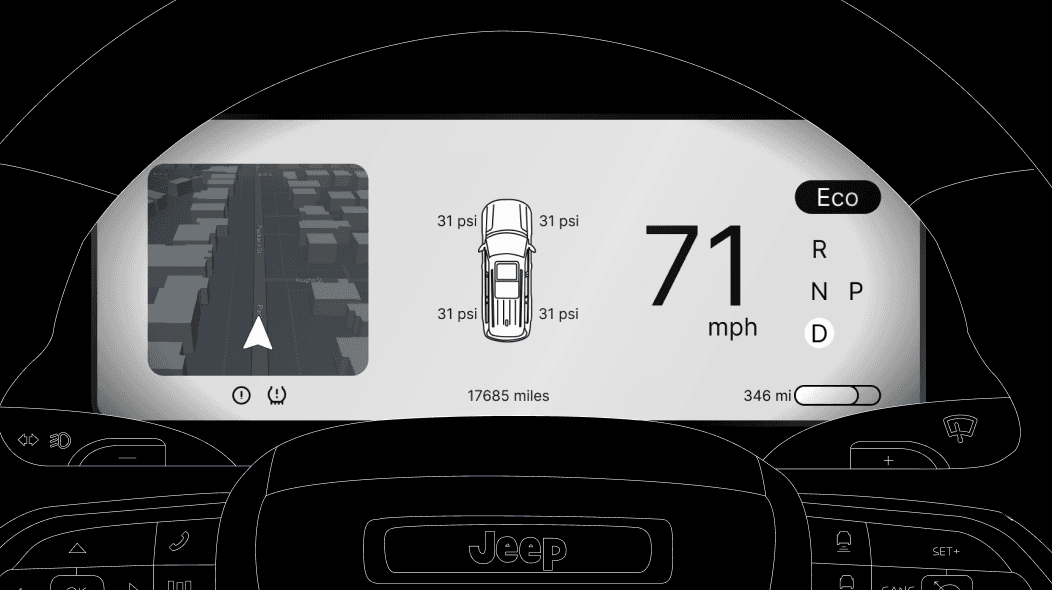 I expanded the interface from isolated screens into an interconnected ecosystem, creating modular components that could adapt across diverse contexts like navigation, media, climate control, and drive-assist states. Using the established grid and typography system, I implemented responsive layouts optimized for different screen sizes and aspect ratios found in modern Jeep interiors. The iconography system was integrated into a reusable library, allowing for rapid screen assembly while maintaining consistent meaning and recognition across touchpoints.