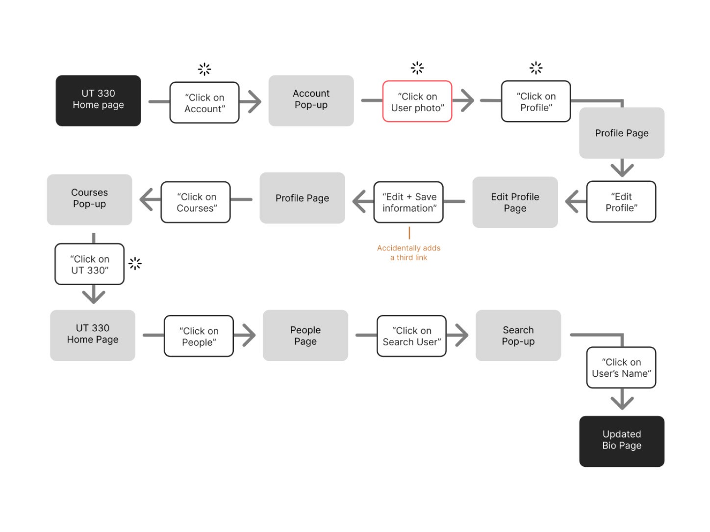 User 3: Added a third link accidentally; initially navigated using search instead of clicking their name