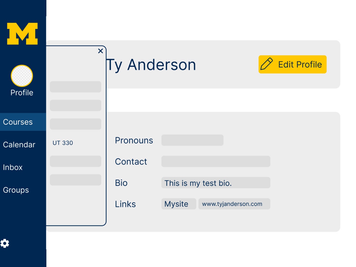 Return to the UT330 course → People → user profile to confirm updates