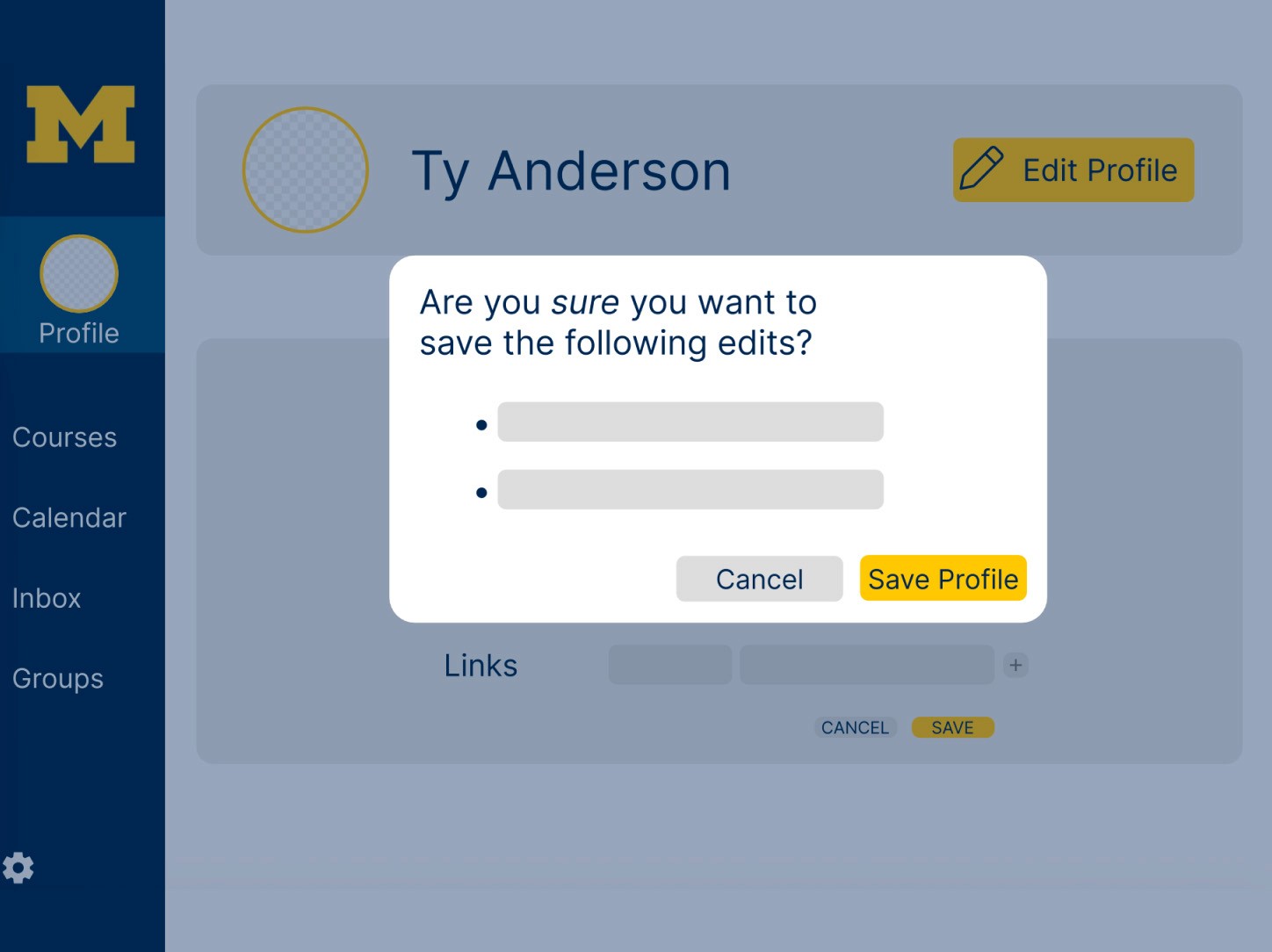 The “Edit Profile” page looked visually similar to the view state, creating hesitation around whether users were actively editing.Link formatting confusion
